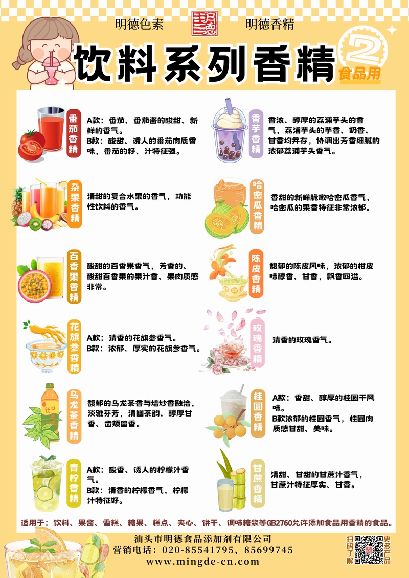 如需獲取不同版本風(fēng)味樣品或配方方案,歡迎聯(lián)系明德團隊。我們致力于為食品工廠(chǎng)提供真實(shí)、安全、高性?xún)r(jià)比的香精解決方案。